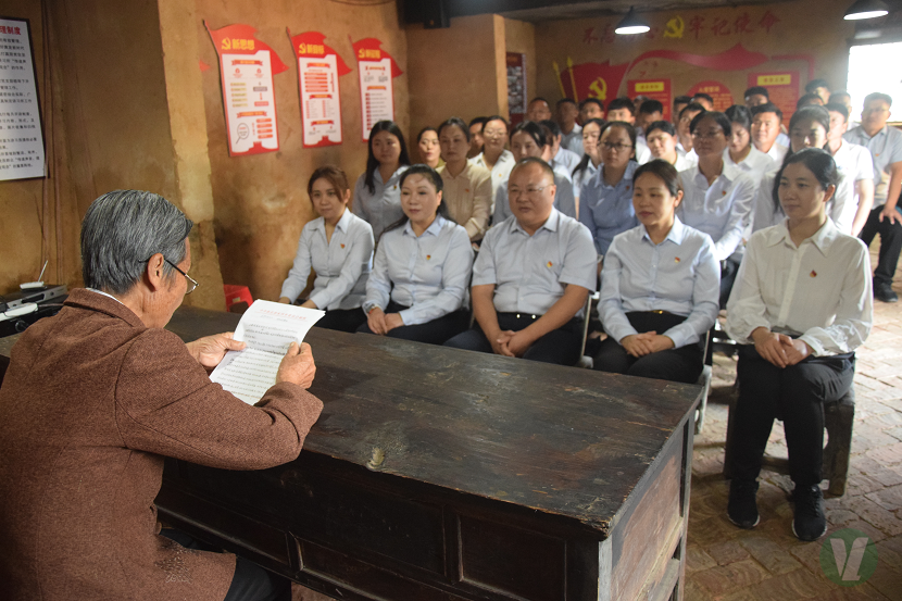 活動第一站來到郭家河鄉潘家灣村,在村里的新時代農民講習所舉行了開班儀式,聆聽了2019年度“中國好人”張愛華“初心如磐、信念如光”微黨課,深入了解她堅守信念承諾,守護紅軍洞59年的感人故事,并沿著老人守護紅軍洞的巡山路線,實地參觀了“紅軍洞”遺址。